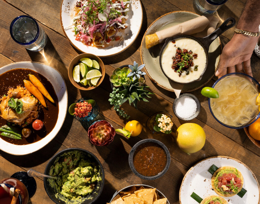 Inside, the traditional Oaxacan decor and the inviting glow of the fireplace against the warm wood furniture make this the perfect place to get cozy. In the evening, string lights set The Plaza aglow, and hand-painted tiles and water features remind you of Old World Mexico. No matter where you sit, skilled bartenders will elevate your experience by crafting a personalized margarita tailored just for you from our extensive collection of over 100 tequilas.