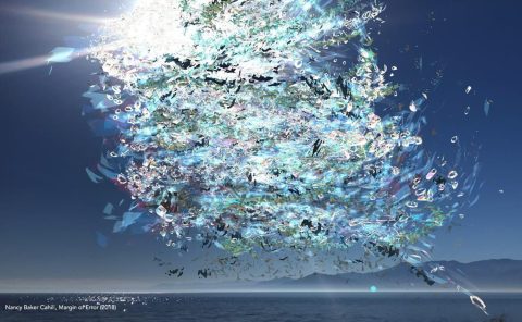 Cahill’s augmented reality (AR) installation at the North Shore Yacht Club at the Salton Sea is a sight to behold, and you’ll need the 4th Wall app to view it. Download the app via WiFi and be sure to enable access to photos and location services. While Margin of Error focuses on human progress as it negatively impacts the environment, Cahill’s second AR installation, Revolution, located in North Palm Springs, hints at the power of energy to reverse a man-made crisis.